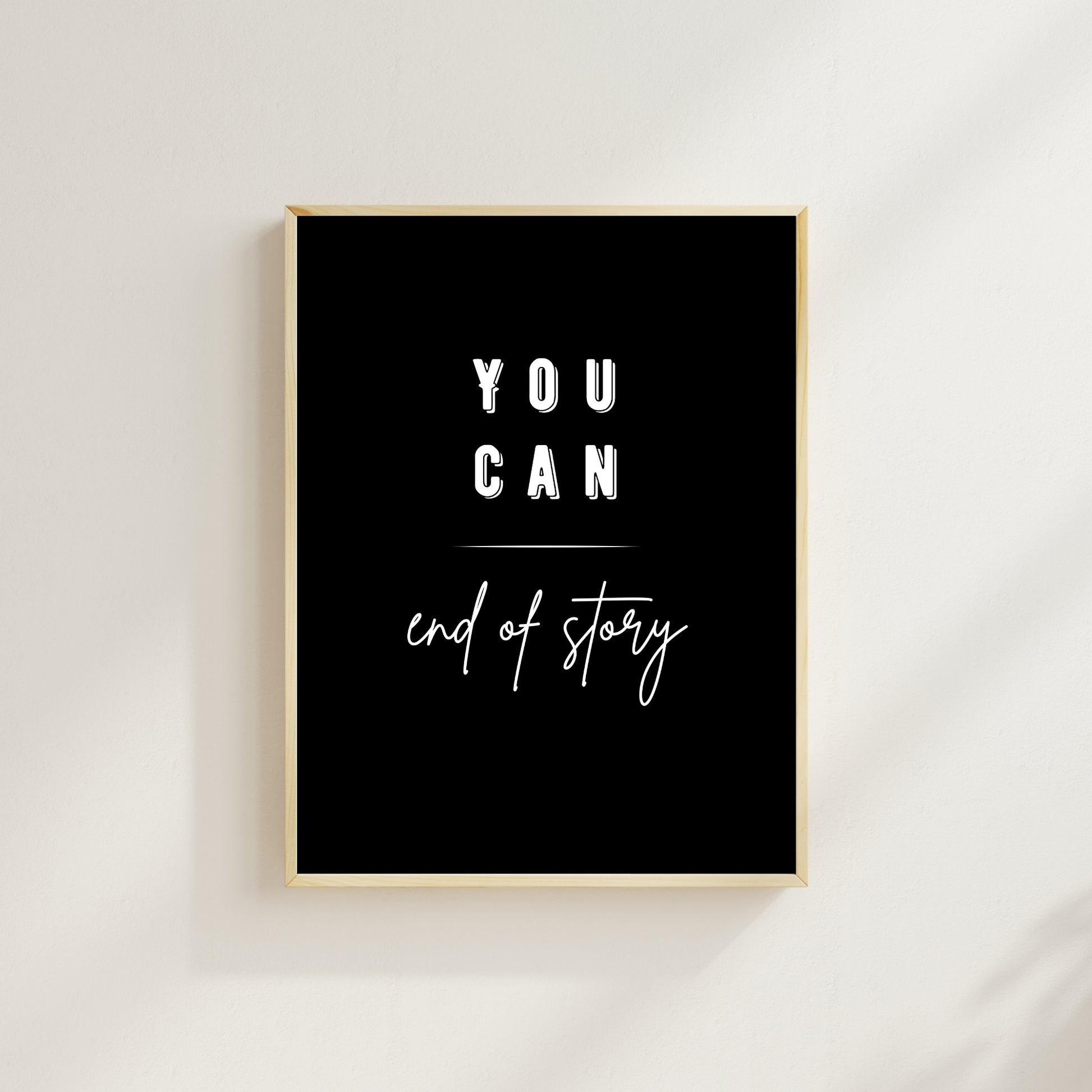 Bring inspiration into your space with this minimalist wall art print that boldly states “You Can – End of Story.”